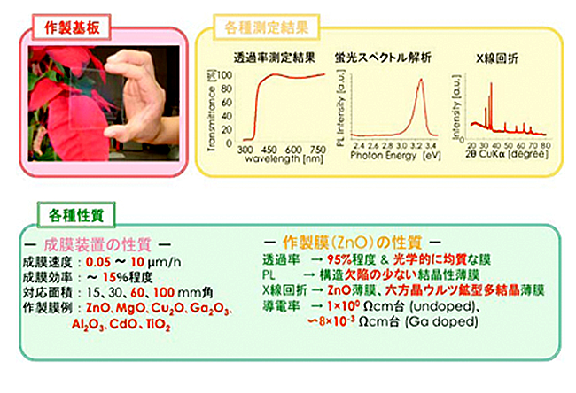 株式会社陶喜では、京都大学との共同研究開発により、大気圧下でミストCVD法(Mist CVD)を用いて酸化物の成膜の開発、製品化を進めています。